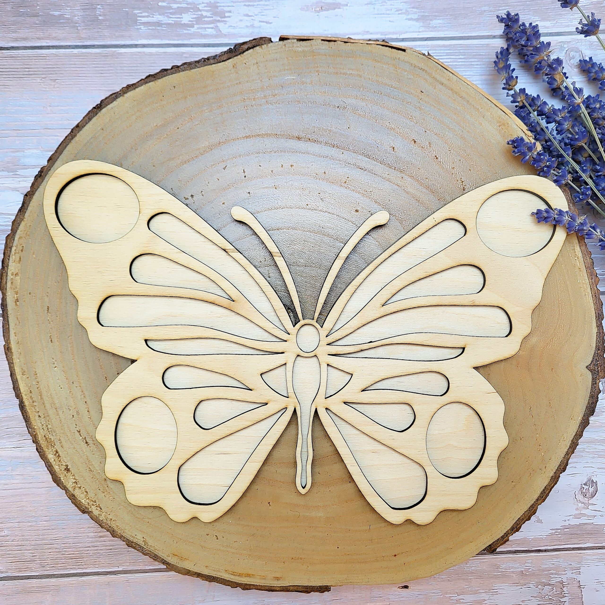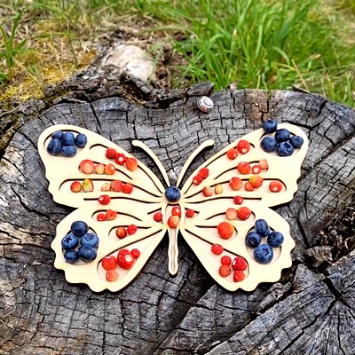 Dvouvrstvý vysypávací tácek ve tvaru motýla z překližky na tvoření má velikost 25 x 17 cm a šířku 0, 6 cm.