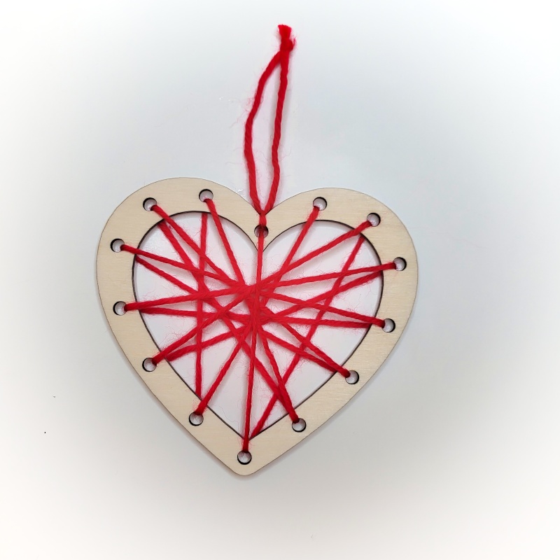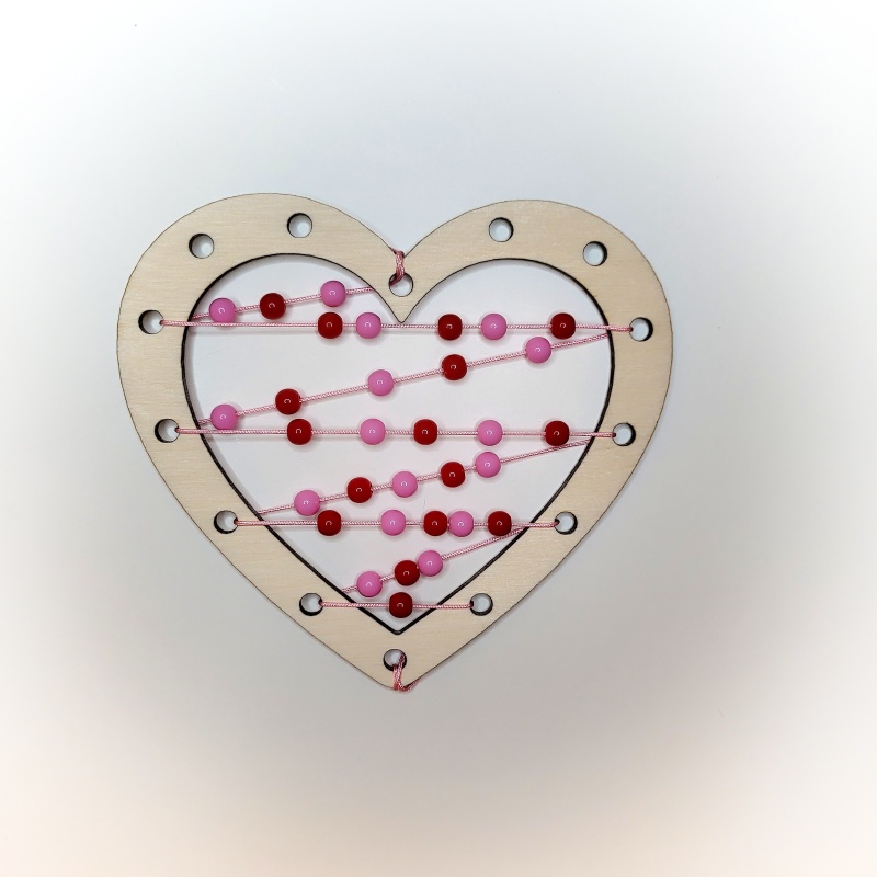 Úkolem dítěte je proplést silnější přízí vždy protilehlé otvory tak, aby se zaplnilo celé srdíčko. Na každou přízi spojující protilehlé otvory lze navíc navléci korálky a hrát si pak s nimi jako na počítadle. Dítě si procvičí rozvoj jemné motoriky a logické myšlení; výřez srdíčka je užitečný pro učení základů vázání tkaniček či počítání.