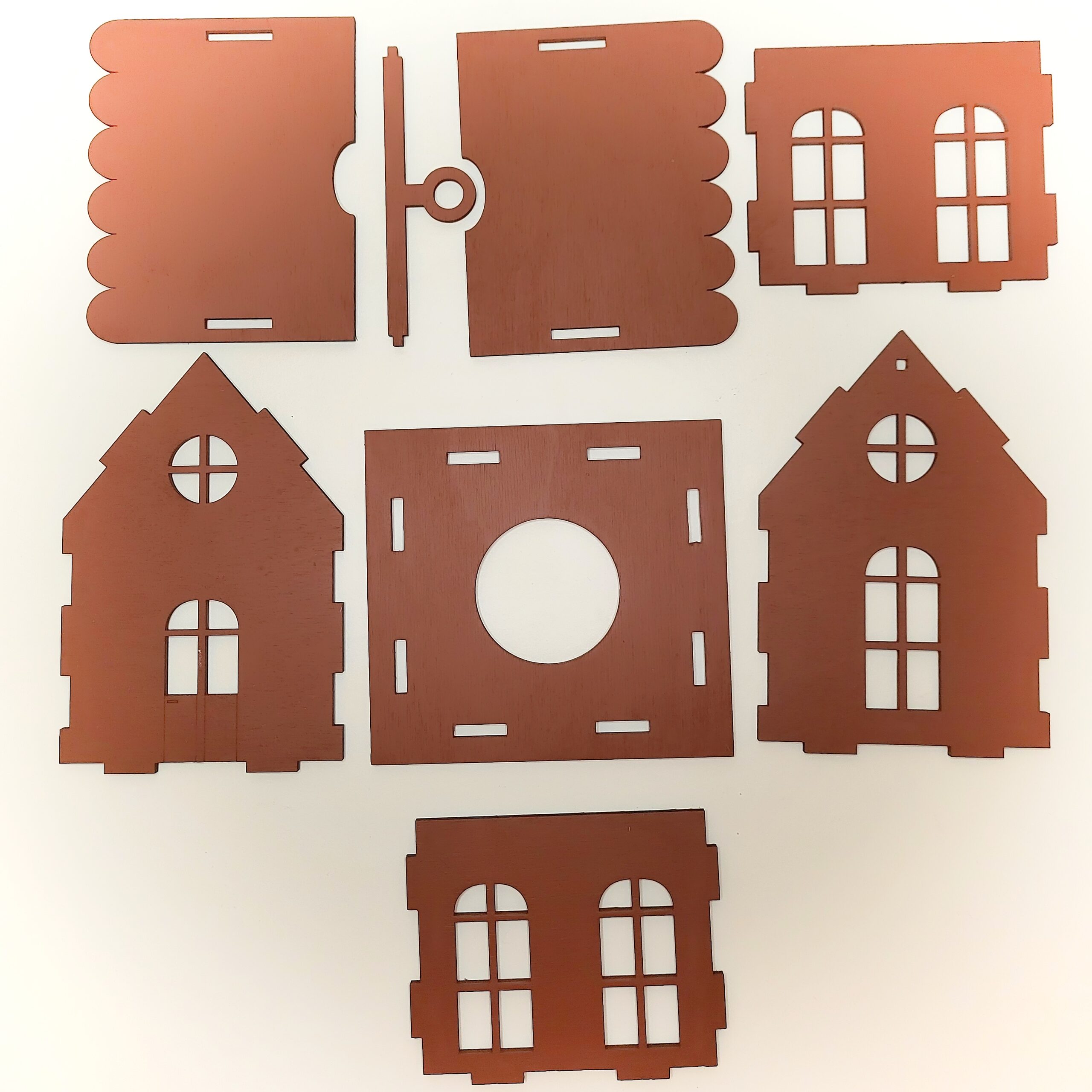 Perníková chaloupka dekorace má rozměry 13 x 10 cm, je oboustranně nabarvena hnědým akrylovým sprejem a neslepená, abyste si ji mohli nejdříve sami namalovat (ideálně bílým akrylovým fixem) a poté sestavit a slepit. Na dně má otvor pro vložení čajové svíčky. Jelikož se jedná o dřevěný výrobek, doporučujeme používat LED čajovou svíčku.